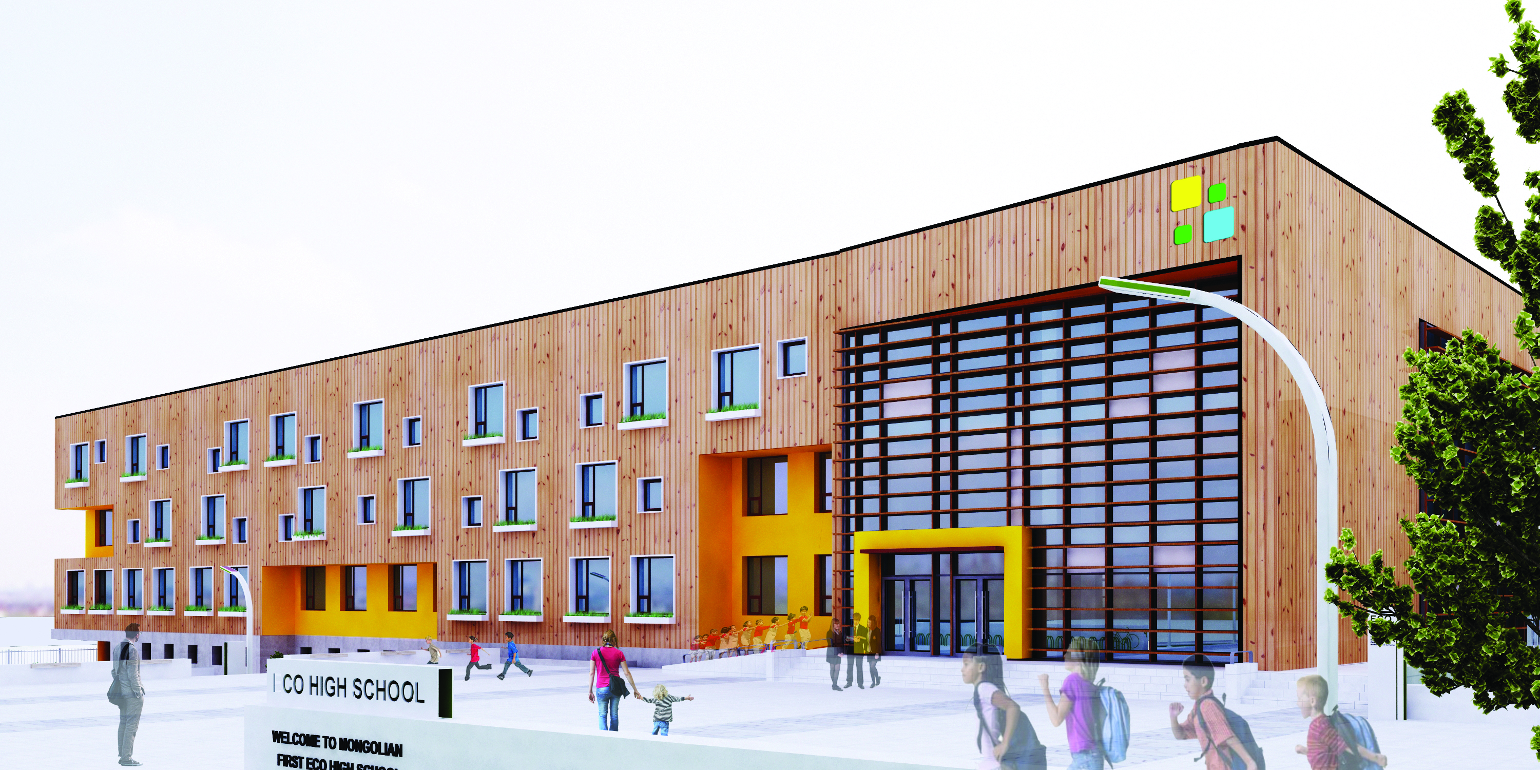 “Ногоон эдийн засгийн төлөөх түншлэл”-ийн хүрээнд “Тогтвортой ногоон барилга” төслийн шаардлагын дагуу БОНХАЖЯ-ны захиалгаар 640 хүүхдийн суудалтай сургуулийн ногоон барилгын зураг төслийг боловсруулсан. Барилгын архитектур төлөвлөлт нь орчин үеийн сургуулийн барилгын хөгжлийн чиг хандлага, хүүхдэд ээлтэй, хүүхдийн суралцах эрүүл, аюулгүй, ая тухтай орчинг хангасан амрах талбай (рекерация), атриум, нарны гэрэлтүүлэг бүхий цэлгэр хонгил нээлттэй орон зайтай байхаар төлөвлөсөн. Мөн сургуулийн гадна талбайд газрын хаялбарыг ашиглан хүүхдүүдийн амрах модон суудал, ногоон байгууламж бүхий талбай, спорт биеийн тамирын талбай, унадаг дугуйн талбай, эко авто зогсоол, танин мэдэхүйн мэдээллийн самбар, ногоон хүлэмж зэрэг иж бүрэн цогц байхаар шийдэл гаргасан.