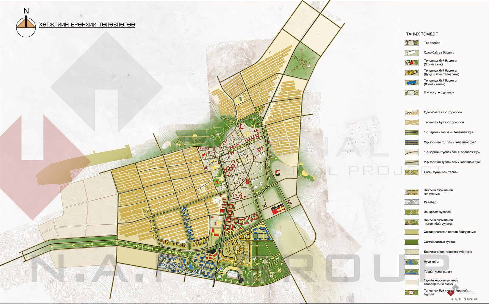 “N.A.P GROUP” successfully developed the “Master plan of Mandalgobi city, Dundgobi province”, being implemented from 2015 to 2030, under the client Ministry of Construction and Urban development in 2015. Planning solution of the master plan for Mandalgobi city was developed to comply with the current urban planning main survey, comprehensive assessment of urban planning, previous master plan implementation and relevant policies, legal documents and programs as well as planned to have 21600 residents of 5684 households during the planned date.
